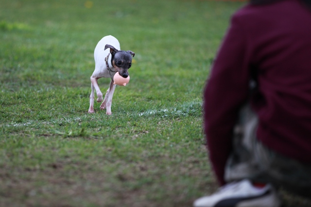 誰も居ない土の広場で出来るようになったレトリーブ。