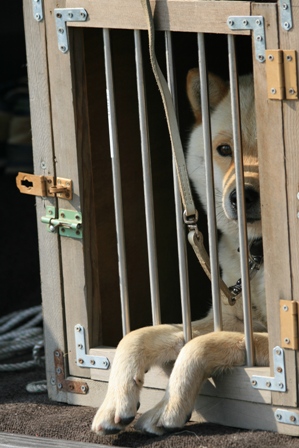 上の写真のように、クレート待機かと思いきや、