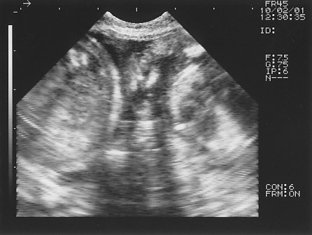 胎児の心臓や肝臓、肋骨に至るまでが写り~の