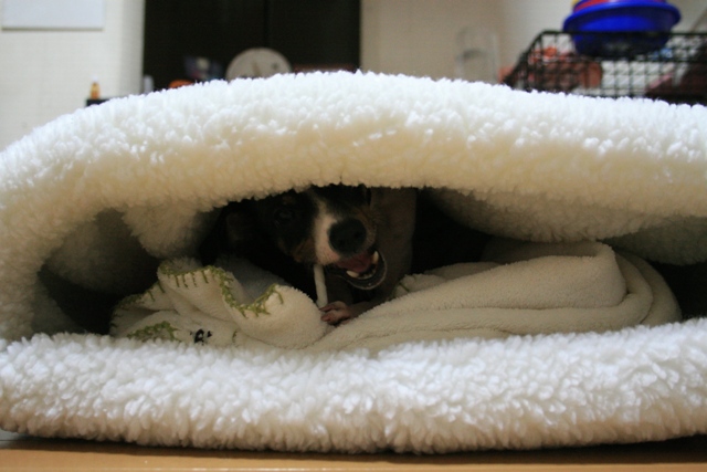 透風は、陽が照ってる時はドーナツベッドでぬくぬく。