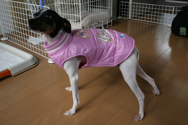 前に青を買ったことあるの。マジックテープだからいいかと、脇がすぐ擦れるこだまに着用しようとね。。。ヤツは胸板厚すぎてマジック外でした(泣) 一つ上のサイズだとブカブカ~