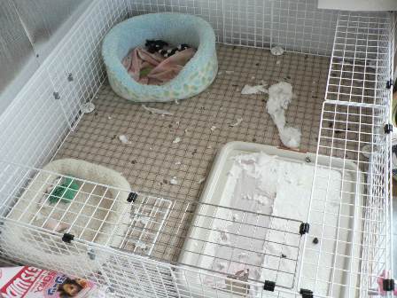 わんぱくトリオ、やんちゃに拍車かかる!! シーツを破かれる回数が増えてきた。 予測はしていたけれども、どうもなんらかの拍子に みんなでビリビリしている模様・・・ ほんの10分くらいの間に木端微塵にする時もあれば、 5時間くらいのお留守番でも綺麗なままの時もある。 爪は小まめに切り、引っかかる状態では無いので 考えられるのは・・・【歯】 シーツは便利なのだが、 引き裂かれると粉が出たり、その粉が水分でゼリー状になってたり パピコの体にも粉が付いて居たり、歯に挟まってたり(--;